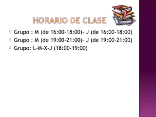 Grupo : M (de 16:00-18:00)- J (de 16:00-18:00)