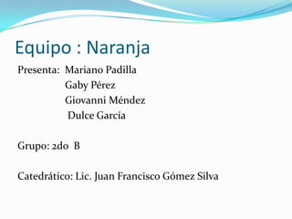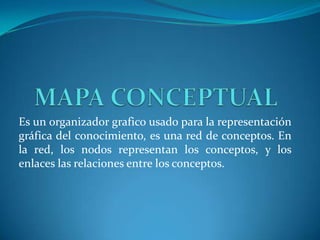 El equipo Naranja presenta sobre los mapas conceptuales. Los mapas conceptuales fueron desarrollados por Joseph Novak en la década de 1960 y representan gráficamente la red de conceptos y relaciones entre ellos. Los mapas conceptuales se estructuran jerárquicamente con conceptos generales en la raíz y conceptos más específicos descendiendo, y su objetivo es representar relaciones entre conceptos mediante cajas unidas por líneas.