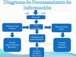 La informática se refiere al procesamiento automático de datos para obtener información mediante computadoras. Los datos son representaciones simbólicas como números o letras que representan atributos de entidades, y al ser procesados pueden usarse para cálculos o tomar decisiones. La informática se utiliza en comunicaciones, almacenamiento de información, gestión de negocios, control de procesos y más.