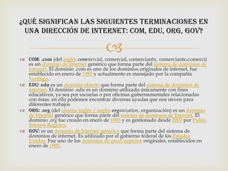 Internet es una red descentralizada de redes interconectadas que usan el protocolo TCP/IP para funcionar como una sola red lógica a nivel mundial. Se originó en 1969 como ARPANET para conectar universidades en EE.UU. y ha crecido para incluir muchos servicios como la World Wide Web, correo electrónico, transferencia de archivos y más.