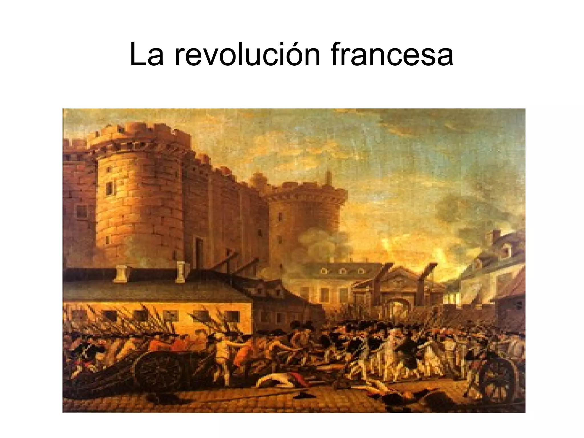 La Revolución Francesa comenzó en 1789 debido al descontento del pueblo con la monarquía absoluta y los privilegios de la nobleza. Esto llevó al estallido de la Bastilla y la formación de la Asamblea Nacional, que abolió los privilegios feudales e introdujo una nueva constitución en 1791. Sin embargo, las tensiones continuaron y Luis XVI fue depuesto, estableciéndose una república en 1793. Aunque la Revolución logró avances democráticos, también enfrentó oposición interna y