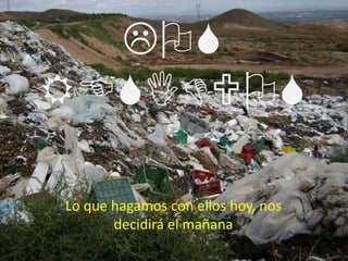 El aumento de residuos se debe a factores como el crecimiento de la población, la expansión industrial y un consumismo creciente, lo que provoca problemas en su manejo y almacenamiento. La gestión de residuos busca disminuir su cantidad, transformarlos en menos peligrosos o reutilizables, y eliminarlos adecuadamente. Se plantea un desarrollo sostenible que satisfaga las necesidades humanas sin agotar los recursos del planeta ni dañar el medio ambiente.
