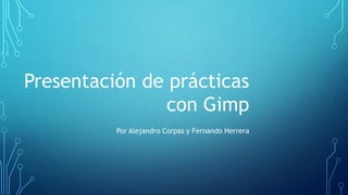 Este documento presenta varias prácticas que se pueden realizar con el software Gimp, incluyendo la restauración de una foto antigua, la creación de un fotomontaje libre y el rejuvenecimiento de una foto de George Clooney.