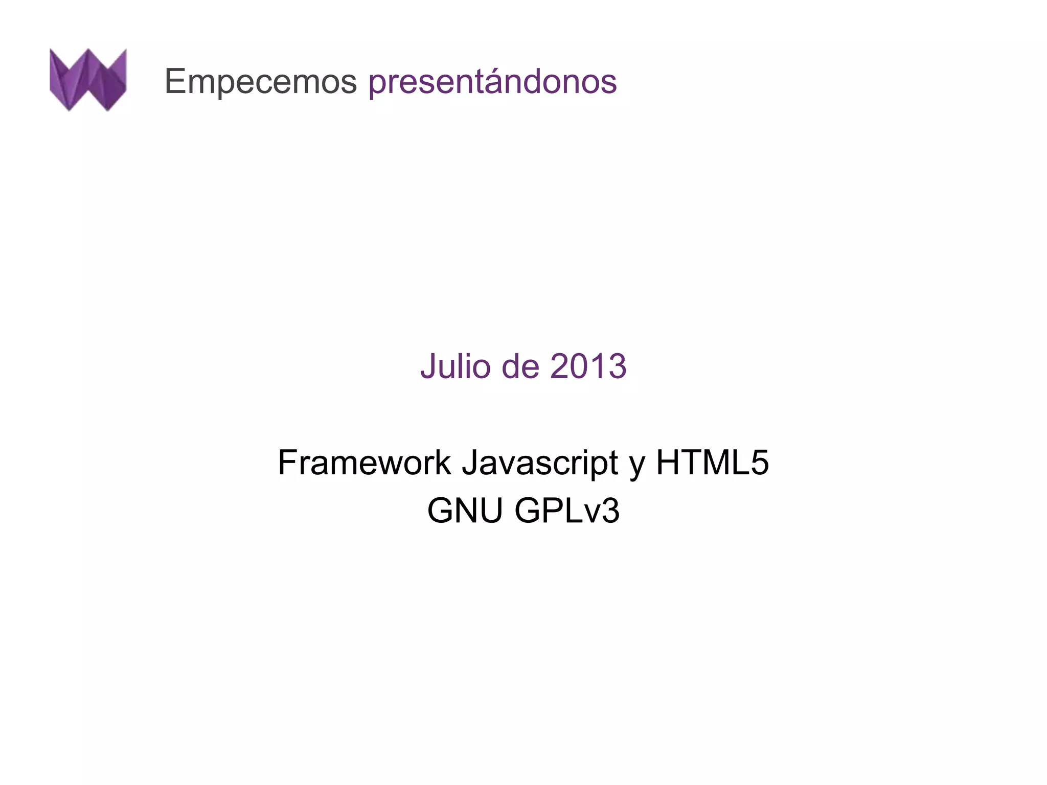 Este documento presenta Webix, un framework JavaScript y HTML5 para el desarrollo de aplicaciones web. Incluye widgets como menús contextuales, árboles jerárquicos y un uploader. Tiene más de 47 widgets y herramientas como un constructor de skins y formularios. Proporciona ejemplos de uso como una grilla, tablas declarativas y aplicaciones reales como un carrito de compras. Aunque ofrece ventajas como desarrollo rápido y elementos predefinidos, tiene algunas desventajas como ser difícil de aprender, documentación deficiente y no ser