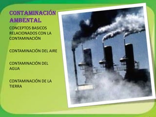 Este documento presenta estrategias para prevenir la contaminación ambiental. Discuten conceptos básicos como la contaminación del aire, agua y tierra. Proponen estrategias como realizar cambios en los insumos e implementar cambios tecnológicos para reducir la contaminación. También mencionan el papel de las empresas de publicidad para evitar la contaminación.