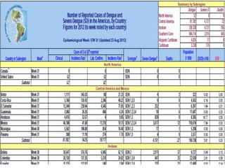 Este documento describe la situación del dengue en Panamá, incluyendo casos y tasas por región de salud en 2012. Explica los diferentes tipos de dengue (sin signos de alarma, con signos de alarma y grave), así como los criterios de confirmación y definición de nexo epidemiológico. Además, resume el marco legal que rige la vigilancia epidemiológica en Panamá, incluyendo decretos que establecen la notificación obligatoria de ciertas enfermedades.