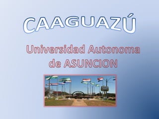 Caaguazú se fundó en 1845 cuando 11 familias se instalaron cerca de una fuente de agua conocida como Ykua la Patria. Actualmente es la ciudad más grande del departamento homónimo, con una población de más de 160,000 habitantes. Sus residentes se dedicaban a la explotación forestal pero ahora se enfocan en la agricultura, ganadería y comercio. Algunos sitios turísticos notables incluyen el Museo César Oscar Serafini, la Biblioteca Museo Juan Ángel Benítez y las casonas histó