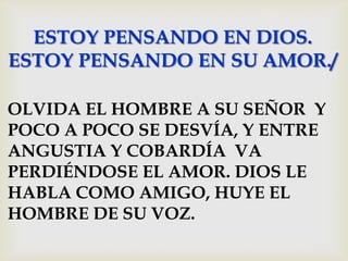 El documento habla sobre la vocación del profeta Isaías. Isaías tiene una visión en el templo donde ve a Dios rodeado de serafines que proclaman su santidad. Un serafín purifica los labios de Isaías con un carbón ardiente del altar. Entonces Isaías escucha la voz de Dios preguntando a quién enviar, e Isaías se ofrece como voluntario para llevar el mensaje de Dios.