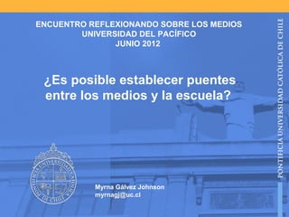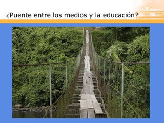 Este documento discute la relación entre los medios de comunicación y la educación. Argumenta que los medios juegan un papel cada vez más importante como agentes educativos junto con la escuela y la familia. También señala que los medios han transformado la vida cotidiana y la cultura de las personas. Finalmente, sostiene que la educación debe cambiar para adaptarse a esta nueva realidad mediática y cerrar la brecha entre la cultura desde la que enseñan los maestros y la cultura mediática de los estudiantes.