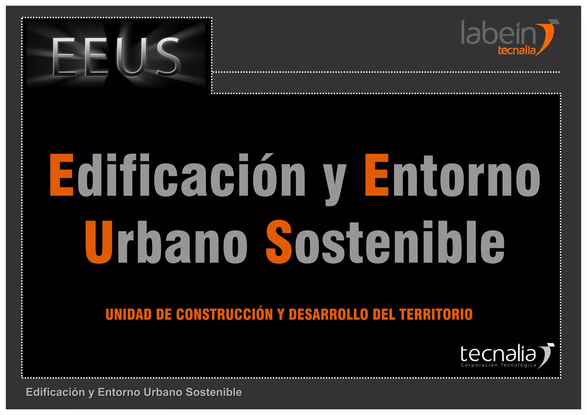 La unidad Edificación y Entorno Urbano Sostenible se dedica al desarrollo de ecoeficiencias y comunidades sostenibles, con un enfoque en el ahorro energético y la industrialización de la construcción. Cuenta con 24 empleados trabajando en eficiencia energética, edificación industrializada y hábitat saludable. Sus principales clientes incluyen gobiernos, fabricantes y promotores públicos y privados.