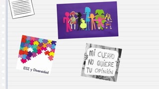 El documento presenta los ejes conceptuales y puertas de entrada de la Educación Sexual Integral (ESI) en las escuelas. La ESI busca reconocer a los estudiantes como sujetos de derechos, respetar la diversidad e identidad de género, y enseñar sobre sexualidad de manera continua y transversal en todos los niveles educativos. También destaca la importancia de involucrar a las familias y la comunidad en la implementación de la ESI.