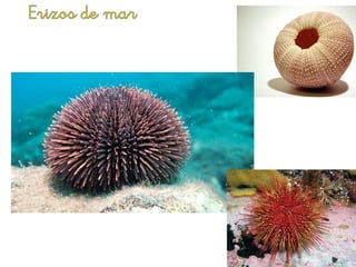 El documento describe a varias deidades y criaturas relacionadas con el mar en la mitología griega. Poseidón era el dios del mar y los terremotos, que conducía un carro tirado por delfines. Su esposa era Anfitrite, diosa del mar tranquilo. Su hijo Tritón era el mensajero de las profundidades marinas. También se mencionan varios animales marinos como tortugas, aves, peces e invertebrados, así como sus características.