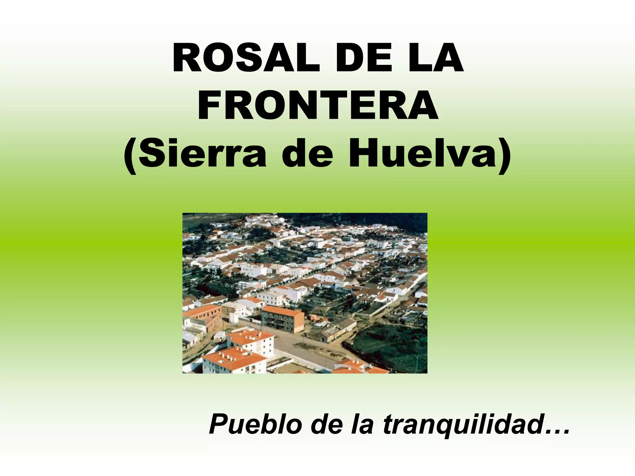El documento habla brevemente sobre el pueblo de Rosal de la Frontera en la Sierra de Huelva, describiéndolo como un lugar tranquilo.