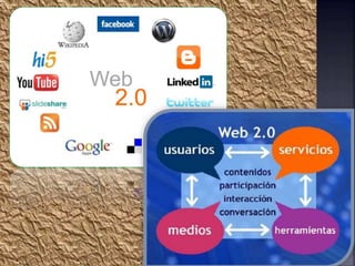 Internet es un conjunto de redes de ordenadores interconectados que permite el intercambio de información. La Web es un conjunto interconectado de hipertextos e hipermedios que se accede a través de navegadores. Inicialmente la Web era estática, pero la Web 2.0 es más dinámica y participativa, permitiendo a los usuarios crear y compartir contenidos.