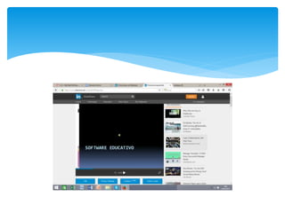 El documento describe el software educativo y su clasificación. Define el software educativo como programas creados específicamente para facilitar los procesos de enseñanza y aprendizaje. Clasifica los programas didácticos en programas tutoriales, que guían el trabajo de los estudiantes, y programas no directivos, que ofrecen más libertad a los estudiantes. También describe las funciones del software educativo, como proporcionar información, instruir, motivar, evaluar y expresión.