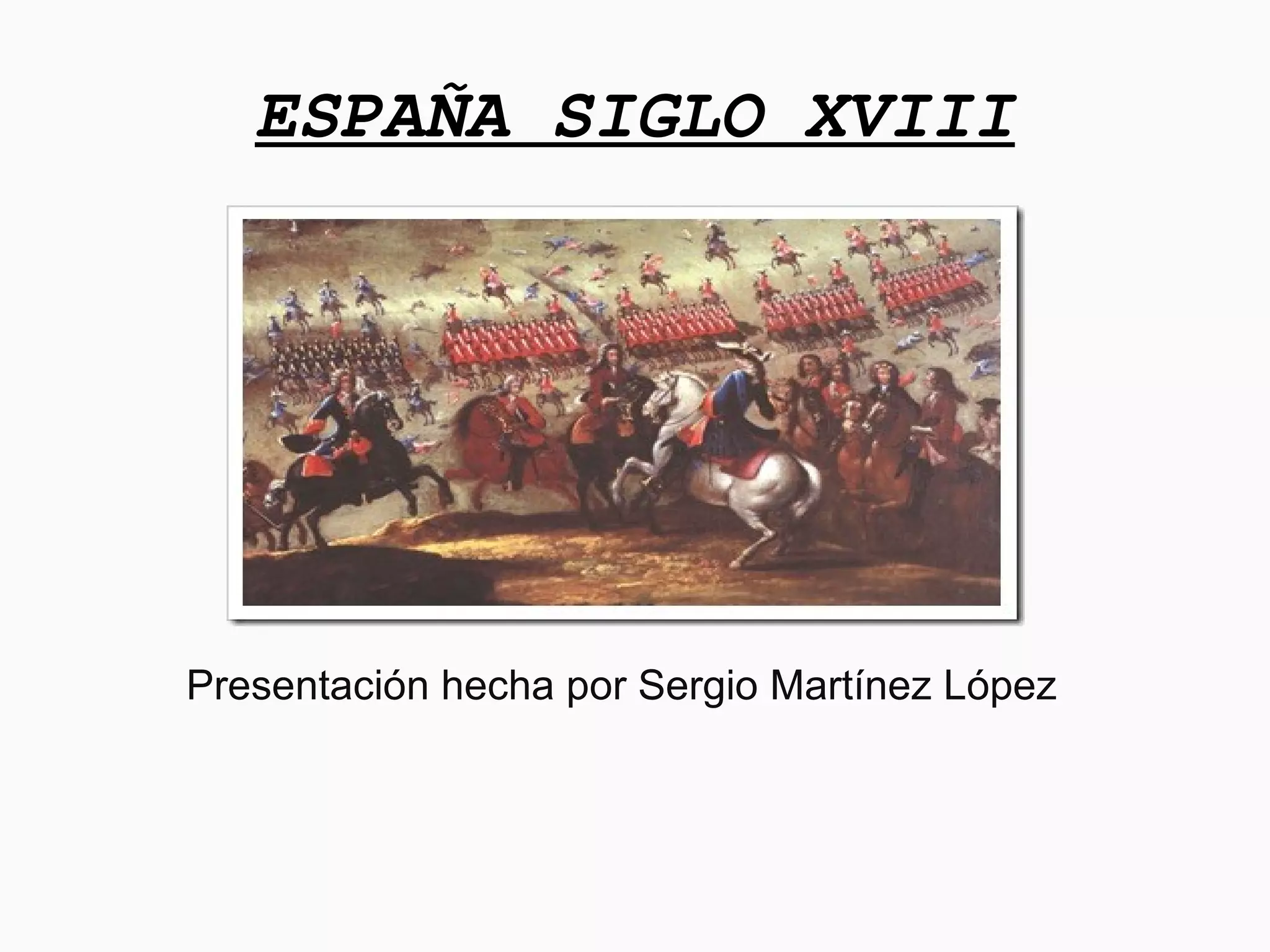 El documento resume la historia de España en el siglo XVIII. Tras la unión de Castilla y Aragón, España conquistó Granada en 1492 y expulsó a los judíos no conversos. La llegada de Colón trajo nuevos productos. La Guerra de Sucesión terminó con Felipe V como rey y los Borbones en el trono. Las reformas Borbónicas centralizaron el gobierno. La Ilustración promovió reformas económicas y una crítica moderada de la sociedad, pero no apoyó cambios revolucionarios.