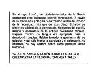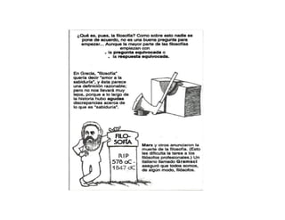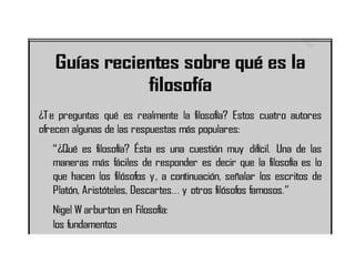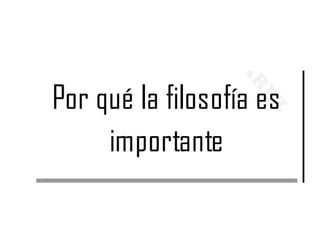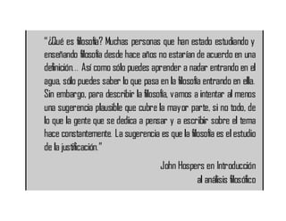 Este documento presenta varias razones por las cuales un teólogo debería estudiar filosofía, incluyendo que el encuentro entre teología y filosofía es inevitable, que la filosofía puede servir como punto de contacto para la evangelización, y que es necesario responder a las malas filosofías. También discute cómo la filosofía se usa hoy en día en libros, películas y otros medios, y ofrece una breve introducción a varias corrientes filosóficas a través de la historia, como la filosof