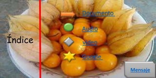 El documento describe la planta del aguay manto, una fruta silvestre amarilla y dulce que crece en un arbusto hasta 2 metros de altura. Tiene propiedades nutricionales como vitamina A, C y B, y se usa para combatir el acné, estreñimiento, diabetes y problemas de próstata. También se usa externamente para aliviar dolores de oídos y prevenir cataratas.