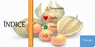El documento describe las propiedades y beneficios del aguaymanto, una planta silvestre con frutos pequeños y amarillos. El aguaymanto es rico en vitaminas A, C y B y provee energía y nutrientes importantes. Se usa para limpiar el rostro del acné, combatir el estreñimiento y la diabetes, y aliviar dolores de oídos y prevenir cataratas. También se puede comer crudo o en ensaladas para disfrutar de su sabor agridulce.