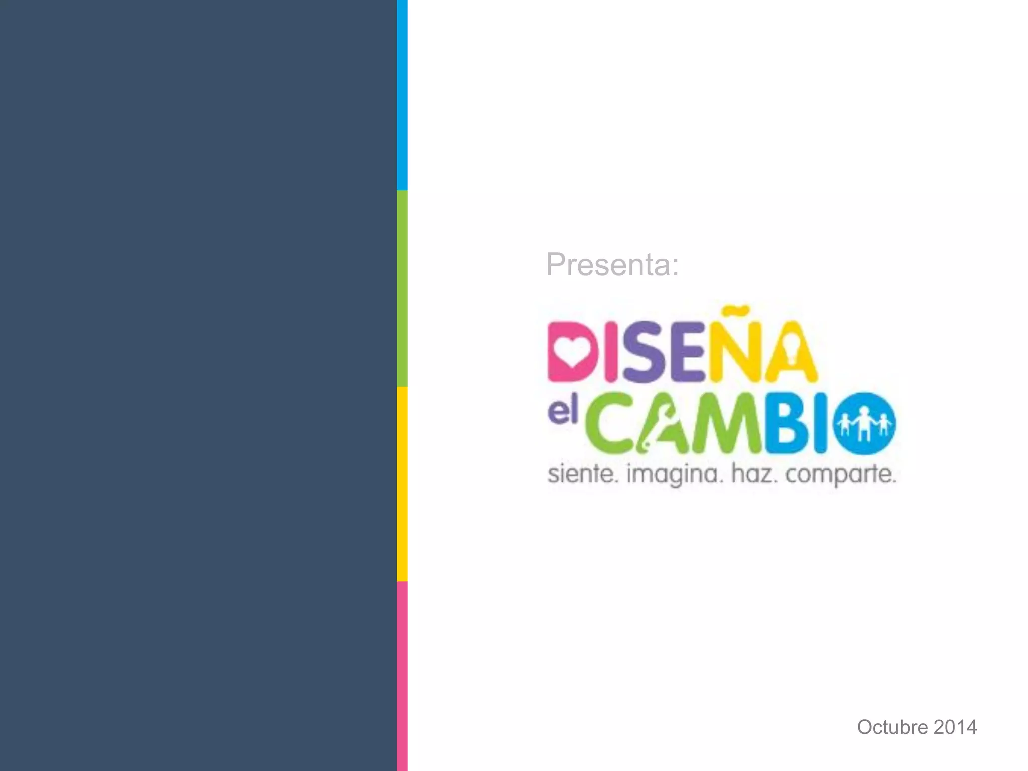 Este documento describe Diseña el Cambio, un movimiento liderado por niños y maestros mexicanos que ha implementado proyectos comunitarios en más de 1.5 millones de personas. El movimiento es posible gracias al apoyo de patrocinadores y aliados estratégicos. Se presentan ejemplos de proyectos escolares que resolvieron problemas locales relacionados con infraestructura a través de la participación comunitaria.