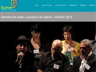 Este documento presenta información sobre Creative Commons Uruguay y los derechos de autor. Resume los diferentes proyectos y eventos de CC Uruguay, incluyendo talleres y cursos de capacitación. También explica brevemente las limitaciones y excepciones a los derechos de autor en Uruguay como copia para uso personal, educación, libertad de panorama, bibliotecas y archivos, préstamo público, obras huérfanas, deep linking, parodia, fair use y dominio público. El documento anima a descargar y reutilizar la presentación.