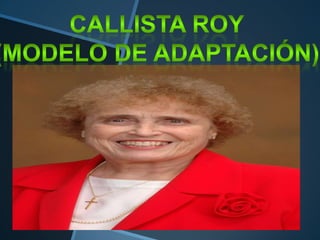 El documento presenta información sobre tres teóricas de enfermería: Carolyn Winer, Sor Callista Roy y Katie Erickson. Carolyn Winer nació en 1930 en San Francisco y obtuvo una licenciatura y maestría en sociología. Se enfoca en la organización de instituciones de salud, enfermedades crónicas y política de salud. Sor Callista Roy nació en 1939 en Los Ángeles y creó un modelo de adaptación del paciente. Katie Erickson nació en 1943 en Finlandia y se centra en la ética del cuidado, la dign