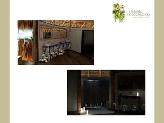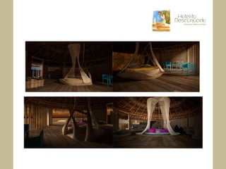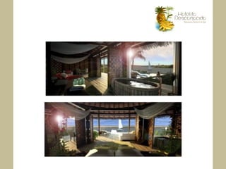 Este documento presenta los planes para la renovación y expansión del Hotelito Desconocido en México. Se describen los detalles de 27 suites y 3 eco villas que se construirán, incluyendo características como tamaños, vistas, instalaciones y servicios. También se detallan los planes para expandir y mejorar el spa, que será el más completo de México. La renovación convertirá al hotel en un destino de bienestar y lujo verde de clase mundial.