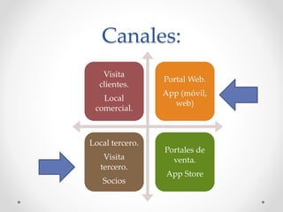 Este documento presenta las estrategias de canales y relacionamiento de Mitzi Guzmán Muñoz para su marca de jeans. Propone trabajar a través de tiendas multimarca y portales web/apps para posicionar y mostrar sus productos. Describe procesos de ventas, actividades para atraer y mantener clientes como descuentos y eventos promocionales. Finalmente, analiza estrategias de ingresos como precios y comisiones de ventas.