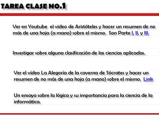 El documento presenta una introducción a la historia de la lógica. Explica que la lógica surgió en la antigua Grecia con filósofos como Platón, Aristóteles y Euclides, quienes establecieron los principios formales de las matemáticas y la lógica. Más tarde, durante la Revolución Científica, pensadores como Descartes y Newton contribuyeron al desarrollo de la ciencia matemática. Finalmente, introduce las distintas etapas en la historia de la lógica, incluyendo