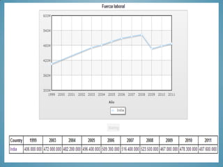 India tiene una población de más de 1.2 mil millones de personas, siendo el segundo país más poblado del mundo. Más del 68% de la población vive en áreas rurales y existe una gran diversidad étnica, religiosa y lingüística. La economía se basa principalmente en la agricultura y los servicios, aunque la industrialización está creciendo. La tasa de alfabetización es baja, especialmente entre las mujeres, y el gasto en salud e infraestructura médica es insuficiente.