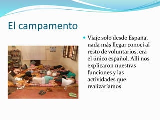 Un voluntario español viajó solo a la India en 2010 para enseñar inglés y matemáticas a niños huérfanos en un campamento durante mes y medio. Al principio, los niños eran tímidos y desconfiados, pero con el tiempo desarrollaron una amistad y cariño hacia los voluntarios. La despedida fue más difícil de lo esperado debido a los lazos que se habían creado.