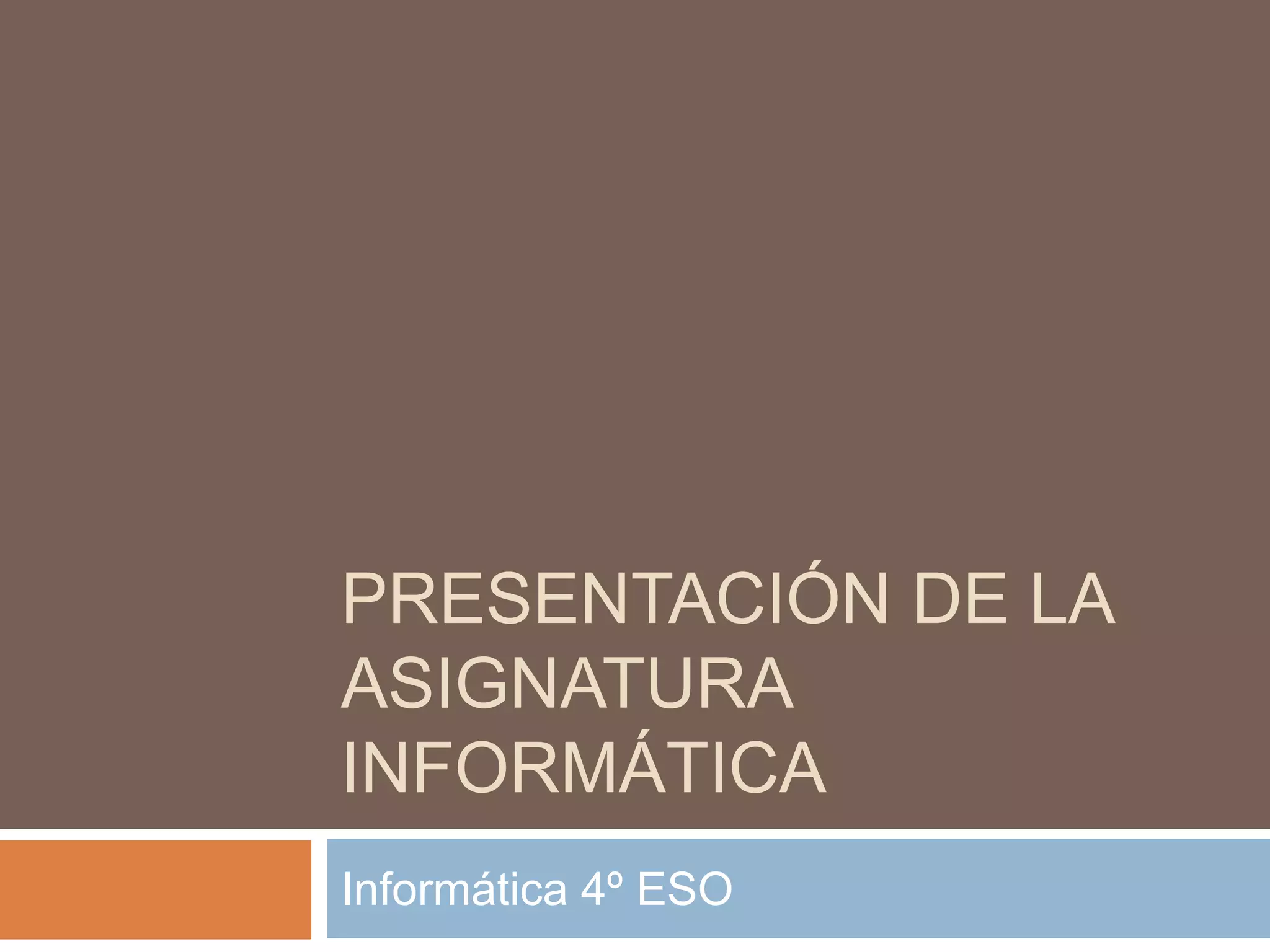 Este documento presenta la asignatura de Informática para 4o de ESO. Describe la finalidad de desarrollar habilidades digitales que permitan aprender a lo largo de la vida, los objetivos de aplicar conceptos informáticos y utilizar herramientas tecnológicas, y los contenidos estructurados en cuatro bloques. Además, explica la secuenciación de los contenidos a lo largo del curso, la metodología basada en proyectos prácticos y el uso de recursos en línea, y los procedimientos de evaluación