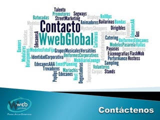 I. W Web Global es una agencia de marketing y publicidad 360° que ofrece estrategias de marketing creativas y flexibles. II. La agencia se fundó en 1998 con el objetivo de fusionar mercadotecnia y comunicaciones para brindar experiencias no convencionales a los clientes. III. Actualmente es un despacho creativo multidisciplinario capaz de enfrentar los retos de los clientes de manera integral.