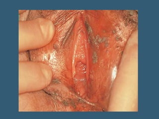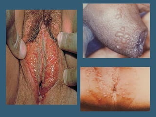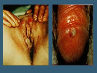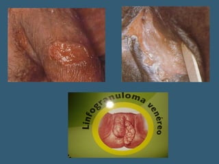 Este documento describe varias infecciones de transmisión sexual como la gonorrea, clamidiasis, tricomoniasis, candidiasis vaginal, vaginosis bacteriana, sífilis, herpes genital, granuloma inguinal, linfogranuloma venéreo, condilomas, virus de hepatitis, virus de inmunodeficiencia humana (VIH) y síndrome de inmunodeficiencia adquirida (SIDA). Las infecciones se transmiten principalmente a través de relaciones sexuales y de la madre al hijo, y sus síntomas y trat