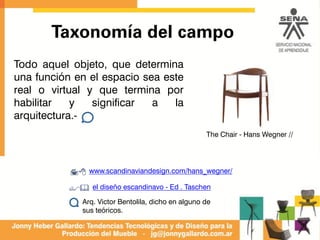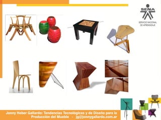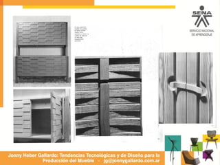 El documento aborda tendencias tecnológicas y de diseño en la producción de muebles, centrándose en la interacción entre materiales, técnicas y el proceso creativo en el diseño contemporáneo. Se enfatiza la importancia de elegir materiales que no solo cumplan una función, sino que también transmitan significado cultural y sensorial. Además, se menciona la necesidad de innovar en el uso de materiales alternativos y de diseñar de manera que se asegure el confort y la seguridad del usuario en los espacios interiores.