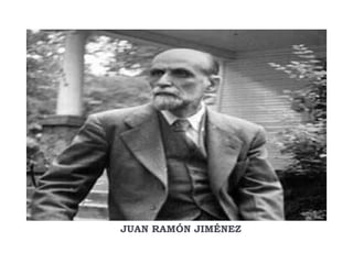 Juan Ramón Jiménez fue un poeta español nacido en 1881 en Moguer, Huelva. Estudió en la Residencia de Estudiantes de Madrid donde conoció a su futura esposa, Zenobia Camprubí. Ganó el Premio Nobel de Literatura en 1956, año en que falleció su esposa. Su trayectoria poética se divide en tres etapas: la primera fue sensitiva y modernista hasta 1915, la segunda intelectual y pura desde 1916 a 1936, y la tercera suficiente y verdadera desde su exilio en América