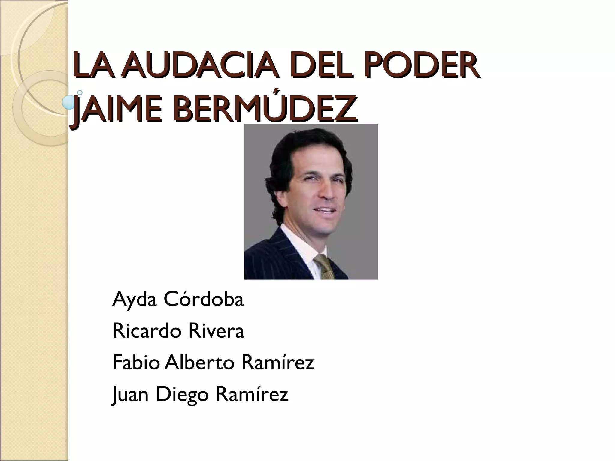 El libro 'La audacia del poder' de Jaime Bermúdez explora la trayectoria política de Álvaro Uribe Vélez, centrándose en su ascenso desde la gobernación de Antioquia hasta la presidencia de Colombia. A través de encuentros personales y estratégicos, Bermúdez analiza las tácticas de Uribe para afrontar desafíos electorales y su manejo del poder, enfatizando su enfoque en la seguridad y su capacidad para conectar con el electorado. El texto también aborda las complejidades de su administración, incluidas las tensiones internacionales, específicamente con Venezuela, y su impacto en el contexto político colombiano.