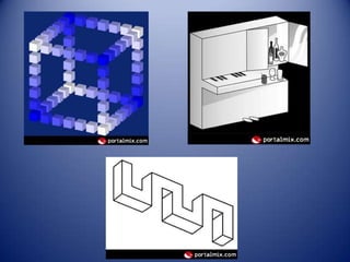 Este documento trata sobre el lenguaje visual y la comunicación a través de imágenes. Explica los procesos de percepción visual y los principios psicológicos que afectan la forma en que las personas ven y entienden las imágenes. También describe diferentes tipos de ilusiones ópticas y las funciones que pueden tener las imágenes, como describir, informar, convencer o comunicar identidades a través de marcas, signos y símbolos.