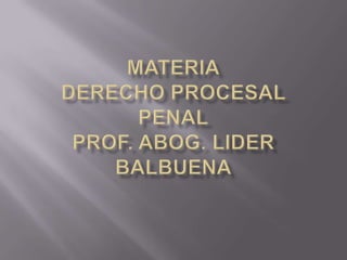 Este documento presenta los objetivos de una materia sobre proceso penal. Busca que los estudiantes comprendan las garantías constitucionales en el orden jurídico penal y el desarrollo del proceso penal a la luz de la constitución nacional. También busca que comprendan los principios del sistema procesal penal e identifiquen las etapas del procedimiento ordinario y especiales, valorando las garantías de los involucrados y respetando los derechos humanos.