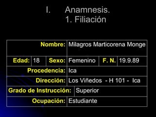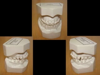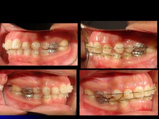 Este documento presenta el caso clínico de una paciente de 18 años que acude al consultorio odontológico con apiñamiento dental y maloclusión. Tras un examen clínico y análisis cefalométrico, el diagnóstico revela una mordida profunda, vestibuloversión de los incisivos, discrepancia en el tamaño de los arcos y un patrón facial hiperdivergente. El plan de tratamiento consiste en corregir estas anomalías mediante el uso de aparatos fijos de ortodoncia durante apro