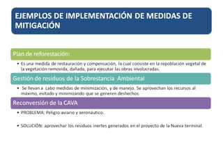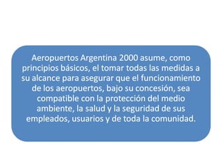 El documento describe el proyecto de una nueva terminal internacional de pasajeros en el aeropuerto de Ezeiza. La terminal incorpora técnicas sustentables como el uso eficiente de recursos, aislamiento térmico, e instalaciones que ahorran agua y energía. El proyecto considera el clima, entorno y reutilización de materiales. La terminal tendrá capacidad para 13 millones de pasajeros anuales y minimizará el impacto ambiental a través de la gestión de residuos y efluentes.