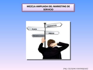Este documento resume los conceptos clave de la mezcla ampliada del mercadeo. Explica definiciones como producto, clasificación de productos, ciclo de vida del producto y línea de productos. También cubre la mezcla de producto, estrategias competitivas, y el proceso de desarrollo de nuevos productos que incluye generación de ideas, filtrado, desarrollo, pruebas y comercialización. Finalmente, ofrece algunas conclusiones sobre la responsabilidad social de las empresas y la necesidad de crear productos continuamente debido