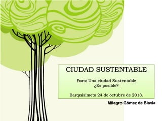 El foro sobre la ciudad sustentable en Barquisimeto discute la creación de un reservorio vegetal y la arborización de espacios públicos a través de alianzas entre el sector privado y público para mejorar el ambiente. Se presentan proyectos como 'Árboles para la Vida' y la reestructuración del servicio de aseo urbano, enfocados en la participación comunitaria y la educación ambiental. La iniciativa busca transformar la relación entre comunidad, empresa y gobierno para revitalizar espacios públicos y promover la calidad de vida en la ciudad.