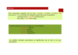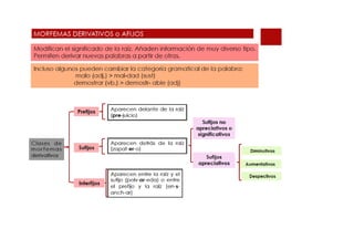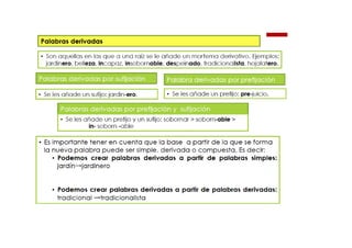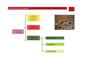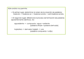 El documento habla brevemente sobre la convergencia de procesos de composición y derivación en la formación de palabras compuestas, como se ve en el ejemplo "picapedrero", que combina los morfemas "pica-", "pedr-" y el sufijo "-ero".