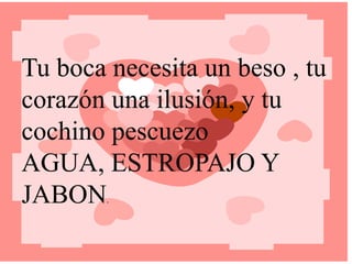 El documento habla de la necesidad de una persona de recibir afecto y esperanza, así como la importancia de la higiene personal.