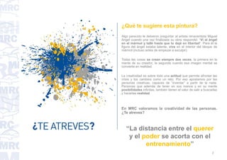 MRC International Training es una empresa enfocada en el desarrollo de personas y equipos a través de metodologías de training, coaching y b-learning, con el objetivo de optimizar los resultados en organizaciones. Se centra en potenciar actitudes y comportamientos, valorando la creatividad y las relaciones humanas como claves del éxito. Con más de 25 años de experiencia, busca ayudar a los profesionales a descubrir y mejorar sus habilidades en un entorno de aprendizaje colaborativo.