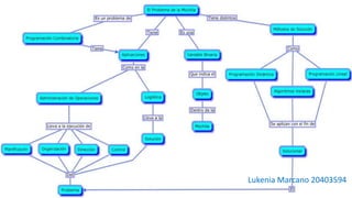 El documento trata sobre el problema de la mochila. Presenta un mapa conceptual que identifica las causas principales del problema como cargar libros y útiles innecesarios, falta de organización y mala postura. También identifica las consecuencias como dolor de espalda, cuello y hombros, así como fatiga.