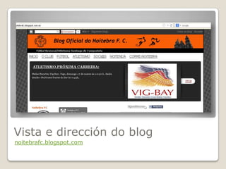 El Noitebra F.C. es un club de fútbol y atletismo en Santiago de Compostela. Su blog oficial, noitebrafc.blogspot.com, proporciona información sobre la plantilla de fútbol para la temporada 2010-11.