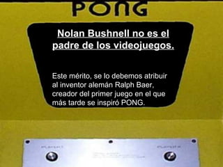Nolan Bushnell fundó Atari en 1972, la primera gran empresa de videojuegos, pero la compañía quebró en 1978 y él tuvo que abandonarla. A lo largo de su carrera, creó varias empresas exitosas de videojuegos y otros productos electrónicos, aunque actualmente critica la dirección que ha tomado la industria de los videojuegos.