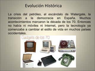 El documento resume la evolución histórica de la tecnología desde la década de 1970 hasta la actualidad, destacando hitos como la aparición de las primeras computadoras personales y el desarrollo de software educativo. También describe los alcances y ventajas de las tecnologías de la información y la comunicación en la educación, como el acceso a la información y la enseñanza personalizada, así como los desafíos y desventajas como la brecha digital y la dependencia tecnológica.